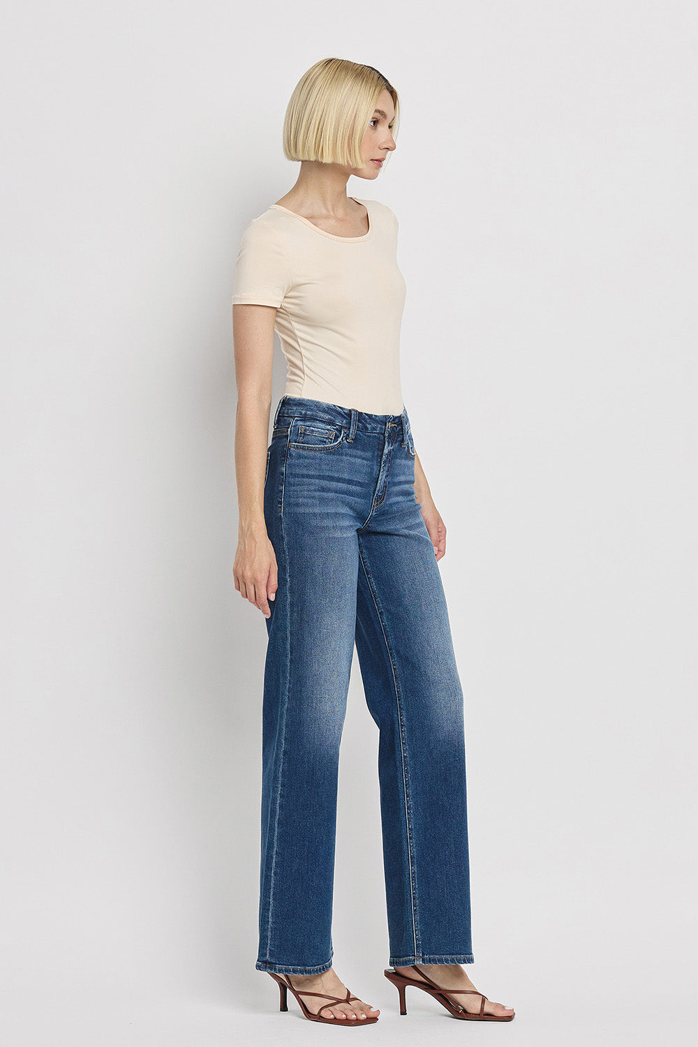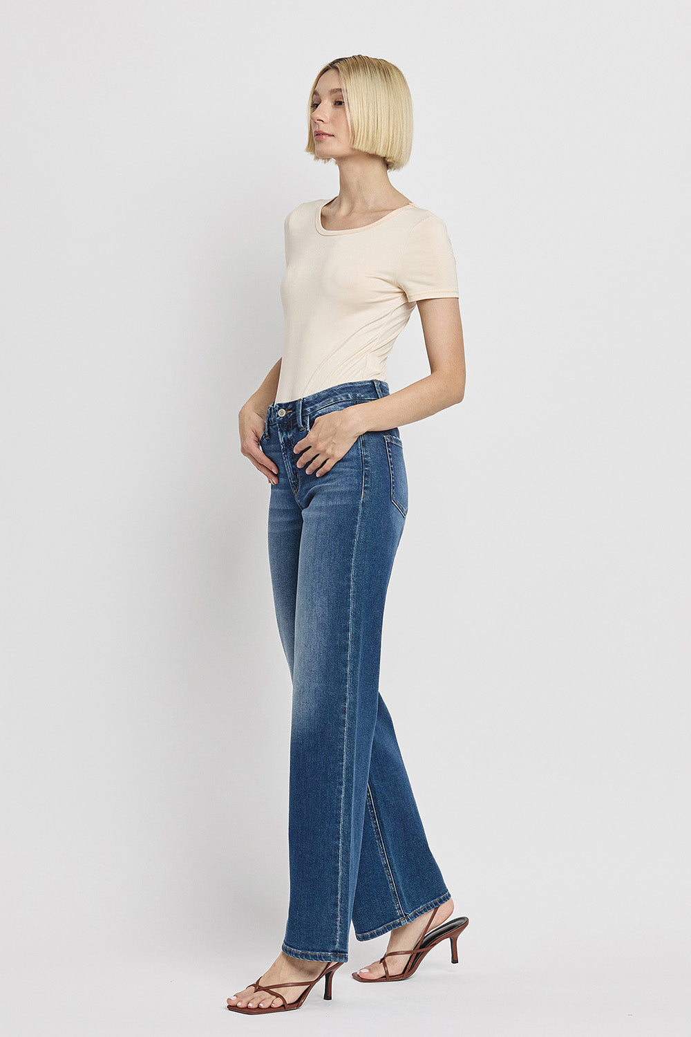 Constructed with comfort stretch denim, the Charlotte Jeans feature a high rise waist, finished hem, and a full length for a loose and relaxed fit.